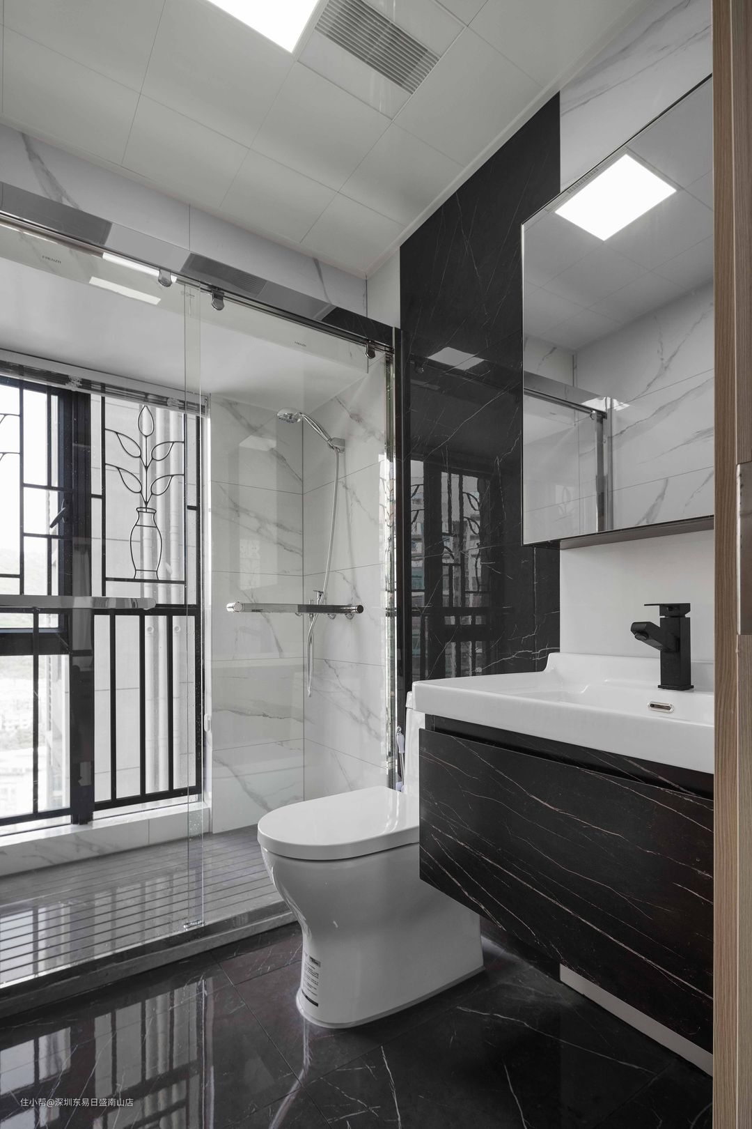 大理石通铺的卫生间,简约时尚,玻璃门做隔断,干湿分离。#卫生间#轻奢#大理石