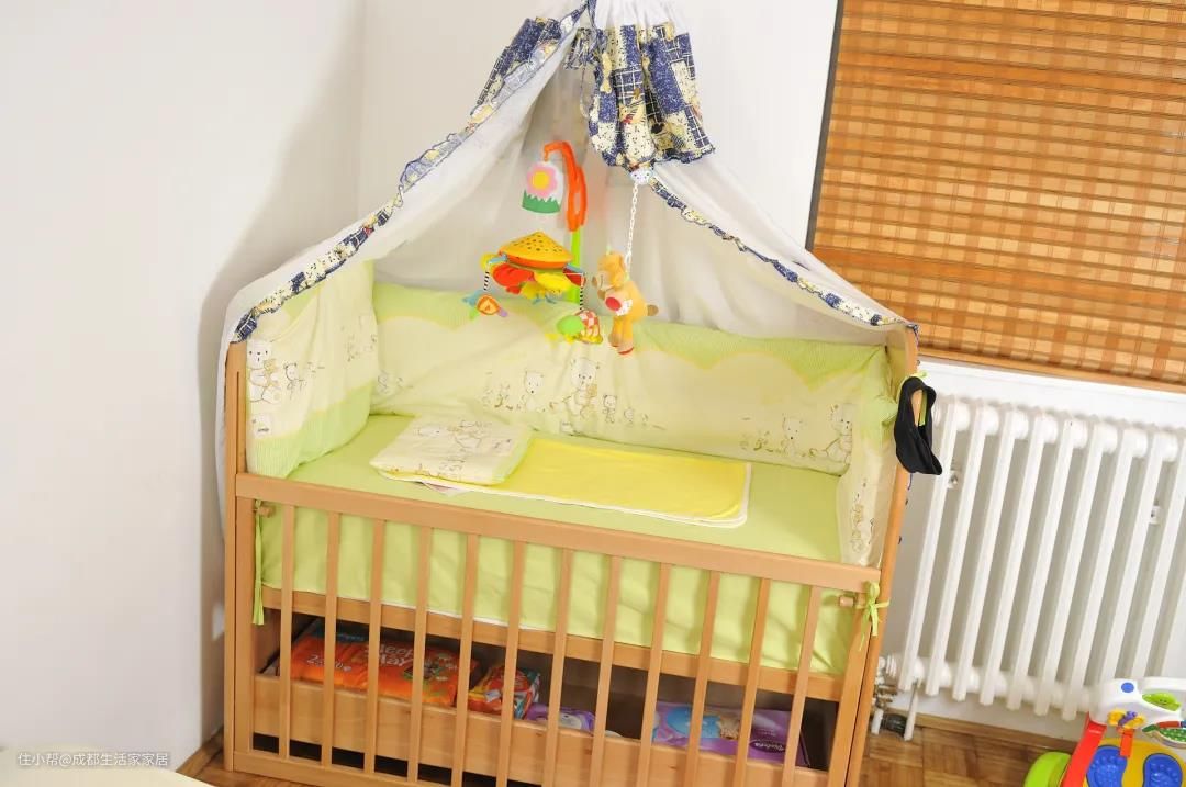 「0~3岁婴儿期」这个阶段的孩子,一般都是跟父母睡。还在哺育期的,为了便于妈妈晚上喂养,可以主卧 + 婴儿床的设计。