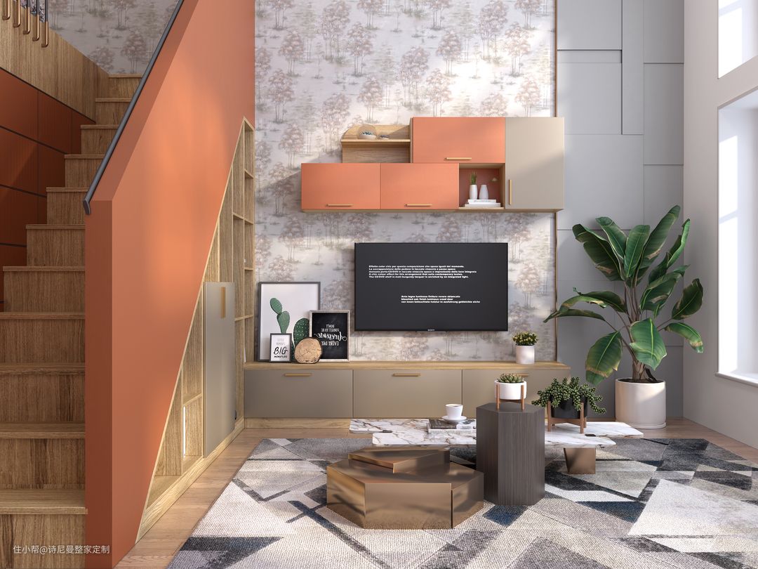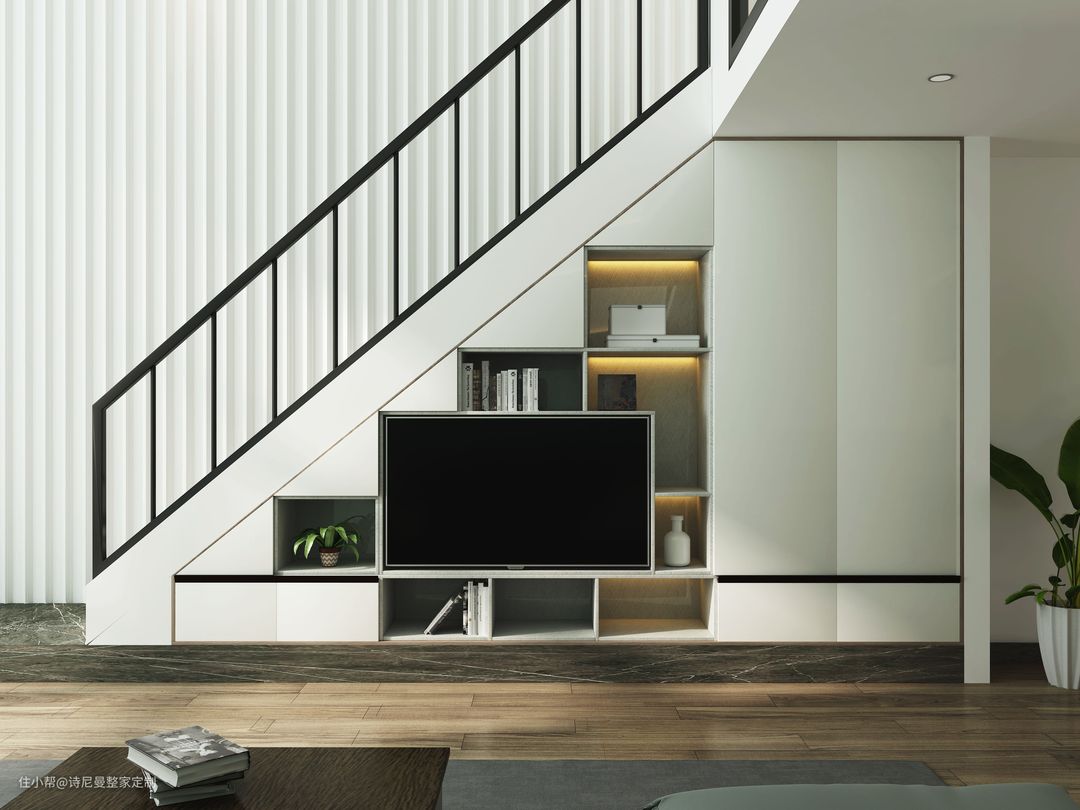 思路四:楼梯=大容量楼梯柜+电视柜子
