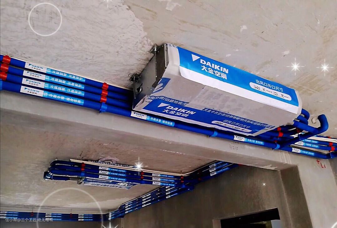 中央空调/新风施工:这一步在水电进场之前完成,水电工人可以根据机位布线,对于无此项需求的业主可以忽略。