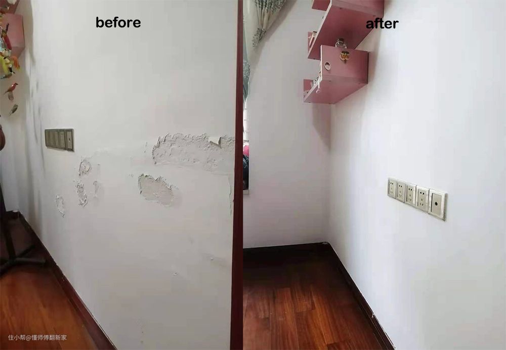 装修时一定要注意防水工程的验收,如果防水处理不当,水就可能顺着墙面往外渗,时间久了墙面就容易返碱,所以卫生间、厨房、阳台常常就是重灾区。