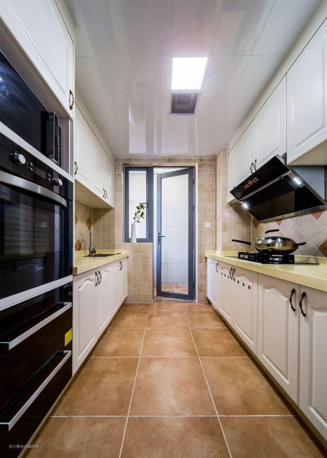 如果预算有限,可以在橱柜后面这种被遮挡的地方,使用最廉价、最难看的瓷砖。但不能不贴,不贴砖的话水泥墙面会返潮,影响橱柜的使用和寿命。