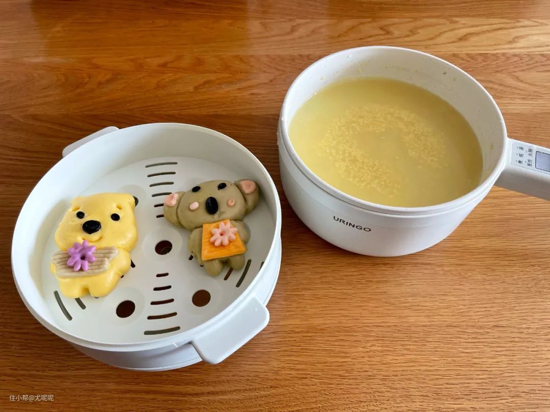 功能方面这个小锅有电子蒸笼版和普通电子款,区别就在于有没有蒸笼,个人建议买的是蒸笼版的,那样就可以实现了煮、炖、蒸、烹饪以及火锅多种选择,还可以实现上蒸下煮,在做早餐时可以说特别实用,完全可以上边蒸早点,下边煮点粥。