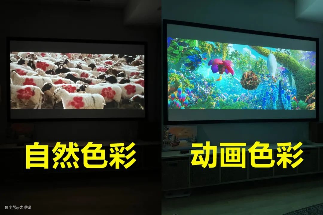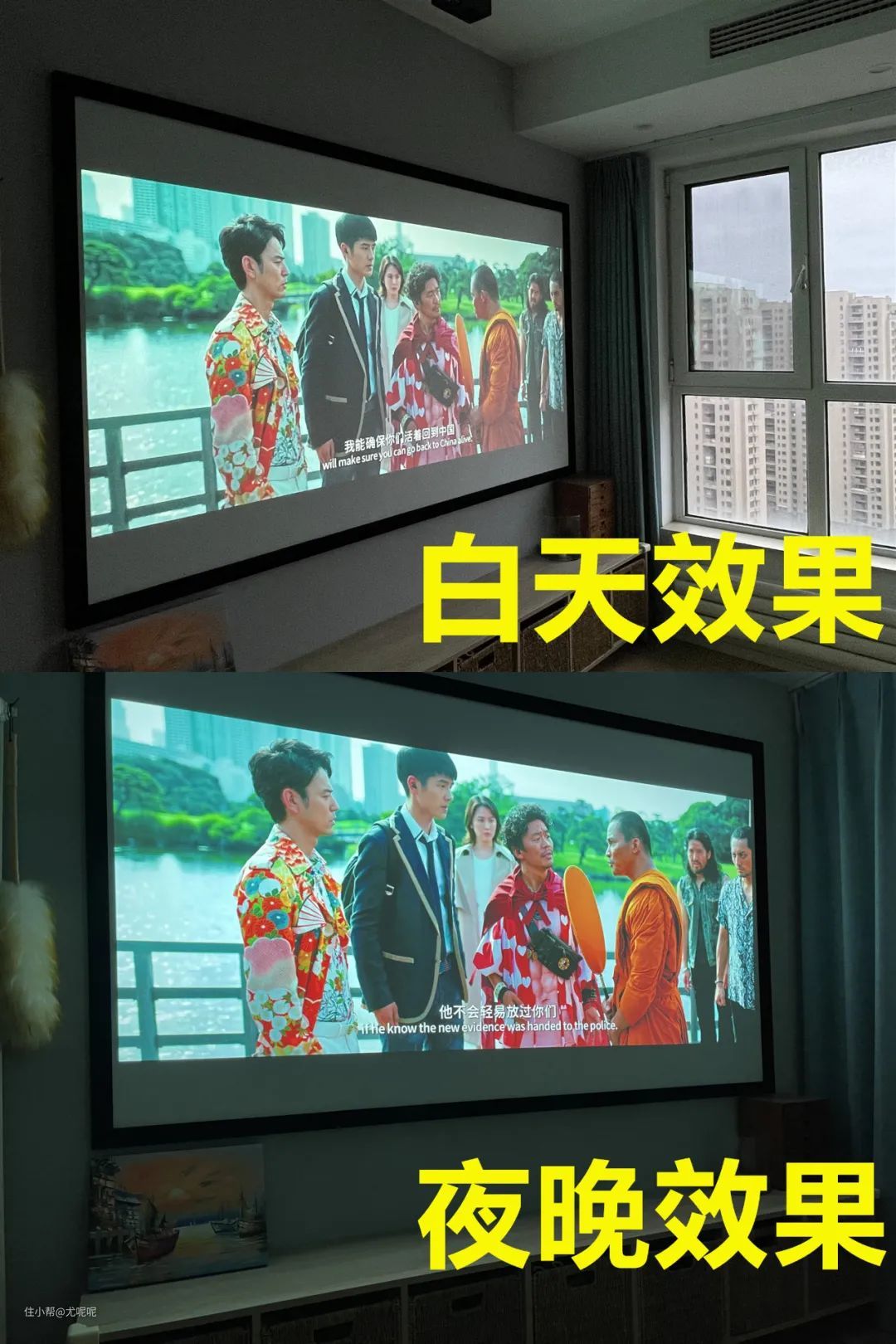 不过最能体现这款投影优势的还是在幕布使用,坚果J10具有0.47寸的大显示芯片可以实现真1080P画质,搭配丹拿音响可以营造出沉浸式的观影体验,尤其是在看大片时真的完全吊打传统65寸电视的感官。