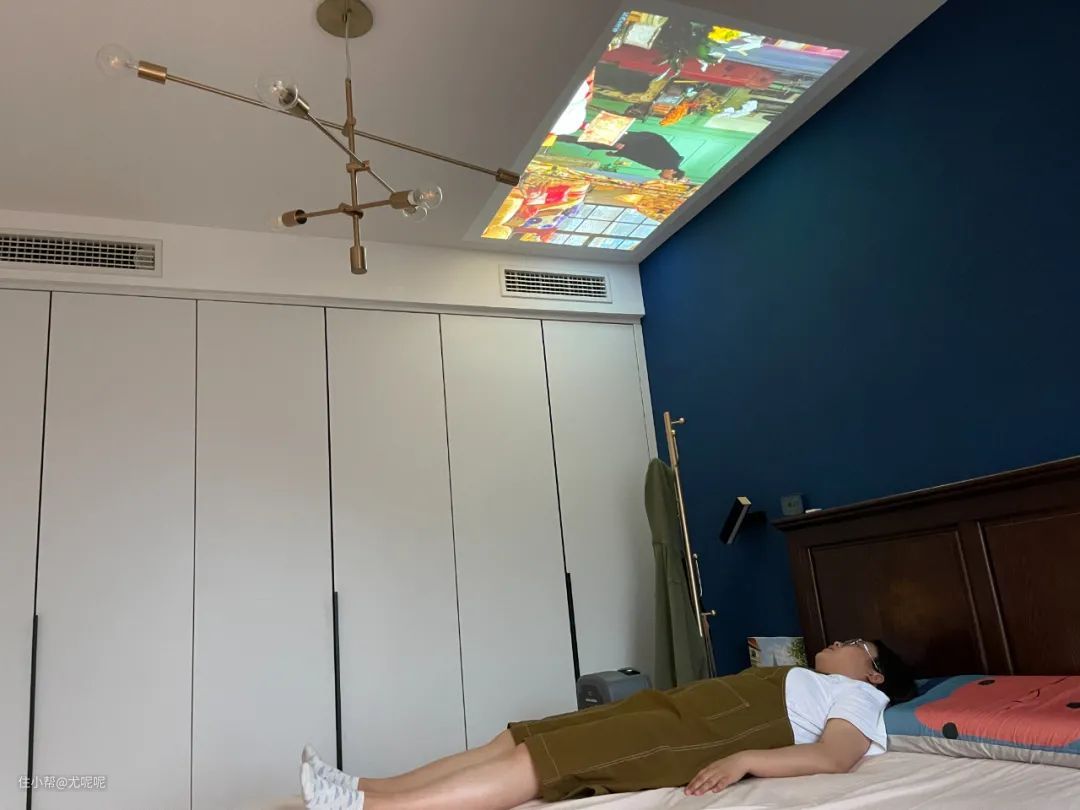 而智能投影的出现则可以同时兼顾大屏和舒适度的需求,完全可以实现“躺平”看投影。既可以把智能投影放置在卧室的床头也能直接把投影放到床边,直接把影像投射到卧室的白墙或房顶上,这样孩子睡了后就可以享受两个人的观影时间了,刷剧刷电影岂不快哉。