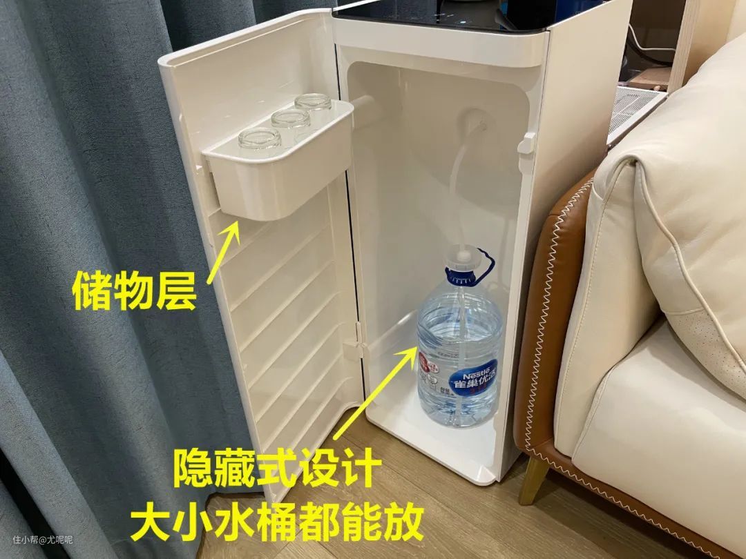 而作为家中第二取水点,灵活性也十分重要。下置隐藏式水箱设计可以放下最大18L的水桶,用于频繁使用需求。也可以放下小桶水,家中人不多时也不怕存水太久不新鲜。同时隐藏式水箱的侧门上还内置了储物层,空间利用上也十分用心。
