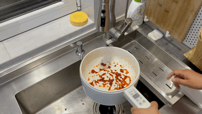 平常吃完火锅后也不必担心难以清理,因为这款锅使用了陶瓷油不粘锅涂层,而且结构上是一体式设计,不但便于清理而且完全没有卫生死角。