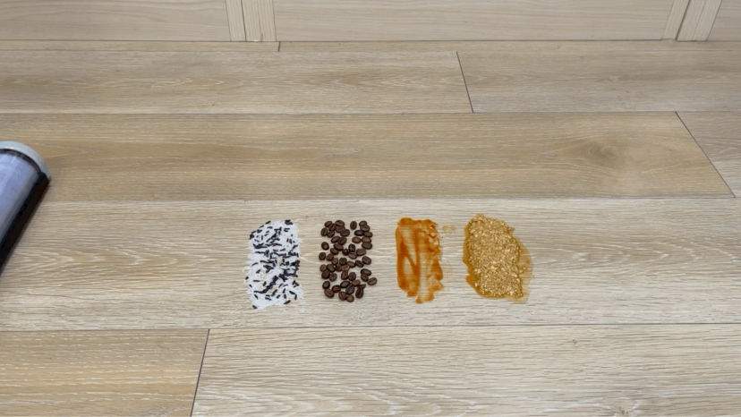 吸力方面其实扫地机的差距并不大了。可以从动图中可以看到清理麦片还是咖啡豆对于扫地机器人来说都属于基本操作了,只要不是太便宜的扫地机都可以办到。而这款石头扫拖机器人足足有2500Pa 的澎湃吸力,吸这些垃圾可以说轻轻松松。