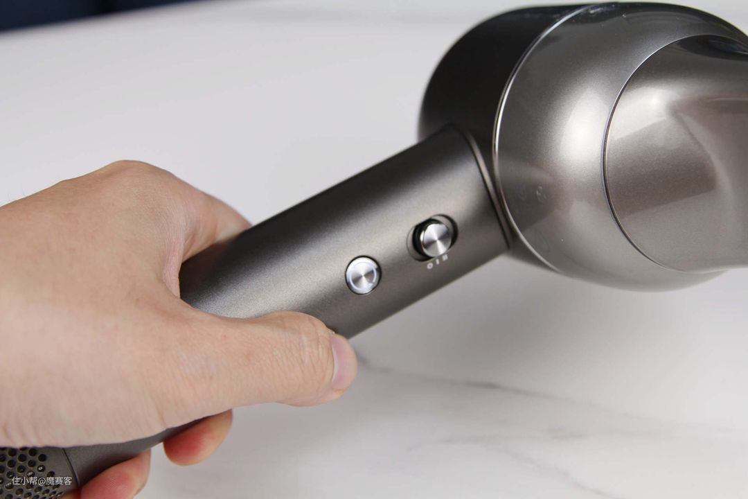 ▲吹风机的后部采用了月坑式下凹设计,不仅更具未来感,同时也巧妙减轻整机重量。