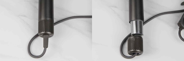 ▲回过来再看吹风机底部,便是篇头所说的下沉式进风口。传统的吹风机基本采用后置进风口,这种进风口很容易造成头发在吹发过程中卷入,从而造成意外的损伤,而追觅这款智能温控吹风机进风口置于手柄处,我们不仅可以随意变化持握姿势,还能很好地避免发丝卷入危险。