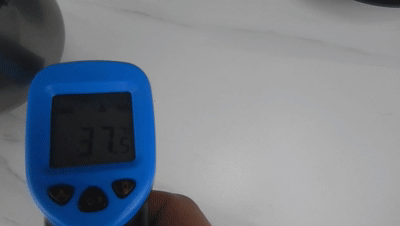 ▲暖风可达到43℃,动图可见,吹风机工作后,被吹桌面的温度升高很快。