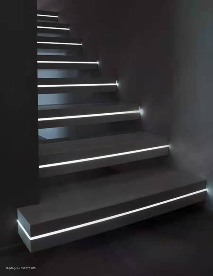 复式、跃层、别墅等户型都带有楼梯,安装灯带,不仅起到照明作用,更在颜值上赋予楼梯踏步一种韵律之美。