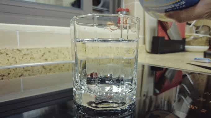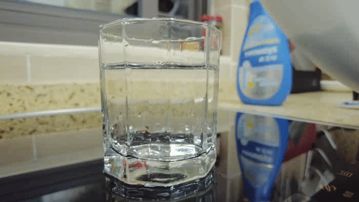上面的动图演示中,洗碗粉和洗碗块在肉眼观察下,溶解速度相当。但实际上当我们将水溶液倒出后就会看到,溶解洗碗粉的杯子内壁沾满了未溶解的颗粒物 ▲