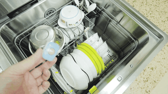 比如在这张动图演示中,楼主往水槽洗碗机中丢进去一块超大的洗碗块。虽然每次使用都感觉有些浪费,却又对此束手无策。