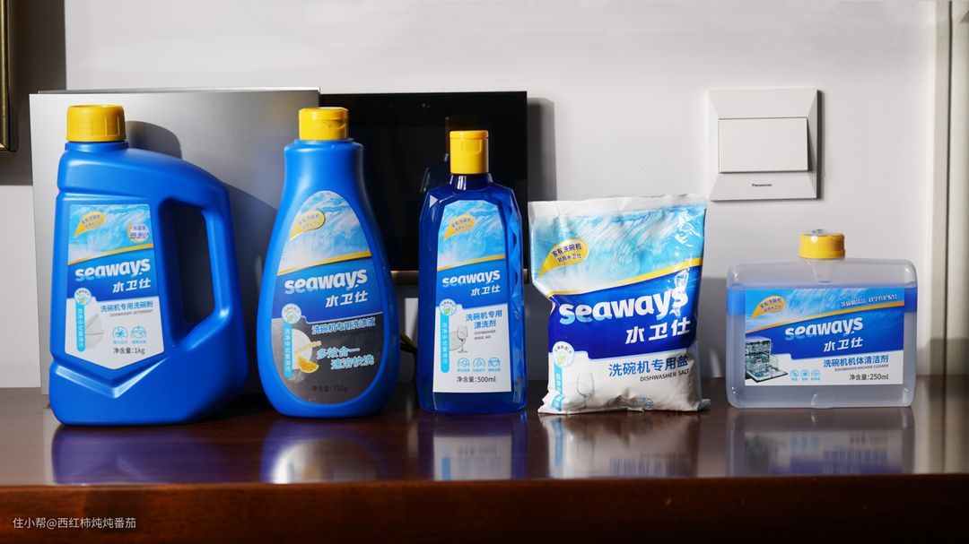 PS:为了方便表述,在下面的内容中,楼主统一用洗碗粉、软水盐和漂洗剂来指代这三类耗材。由于楼主长期使用水卫仕产品(偶尔掺杂其它品牌使用),所以下文图片都以水卫仕为例。