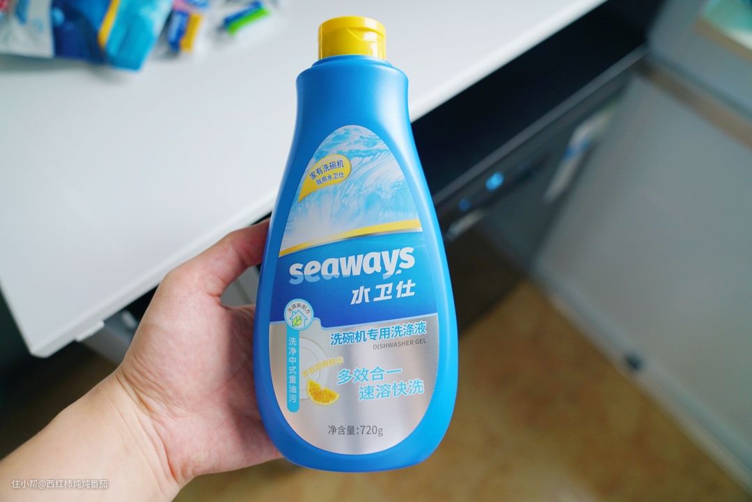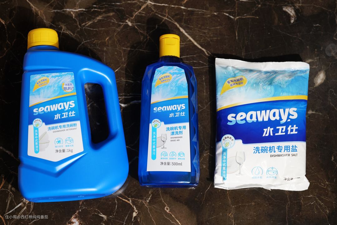 ②目前市面上比较流行多效合一的洗碗块/洗碗凝珠,一次投放,直接实现三种效果,更方便;