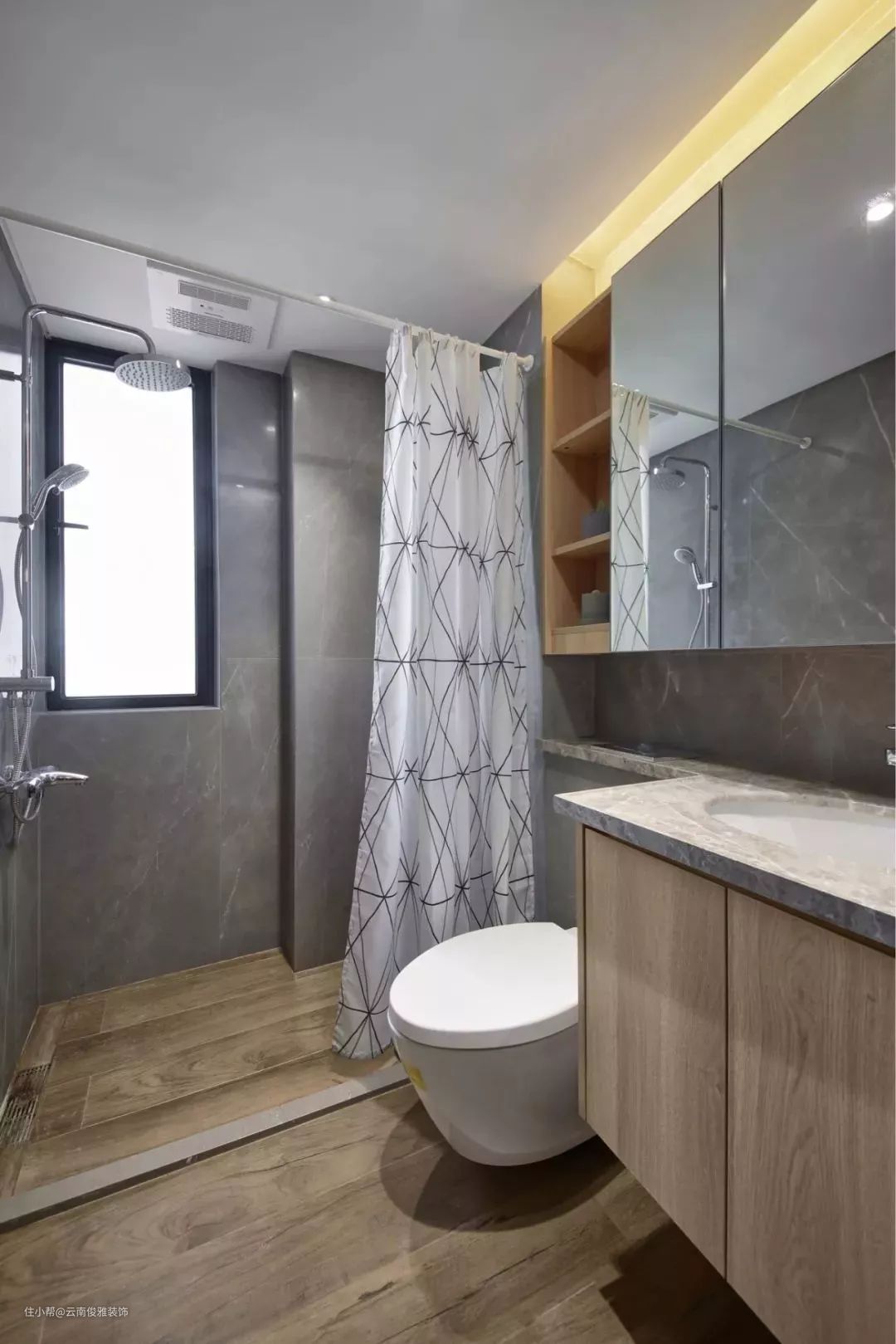 像木纹砖这样的仿古砖在市面上也非常流行,特别是整个家里地面都选择木地板的,考虑到统一性给卫生间也铺上木纹砖,效果非常好哦。