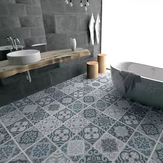 如果喜欢花砖,又不想六角砖铺起来那么麻烦,也有很多方形花砖可以选择。通常比较适合现代小清新,北欧风格这样年轻有活力的文艺风格。