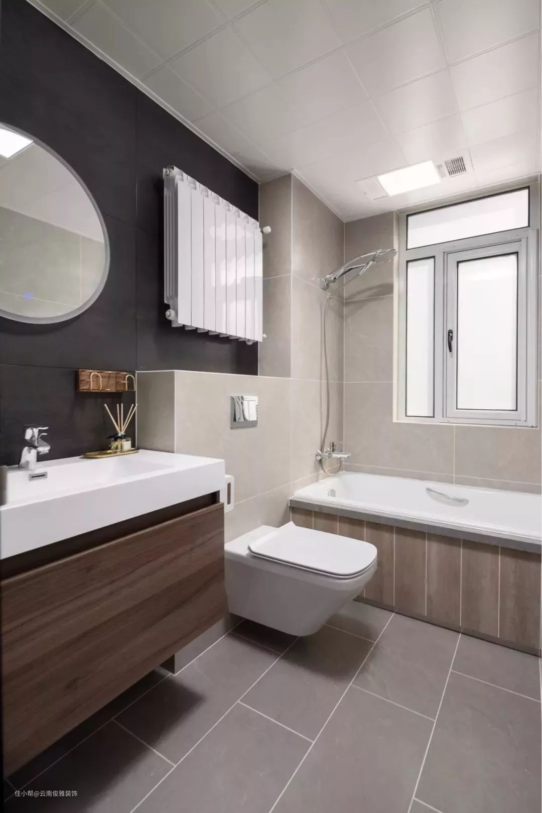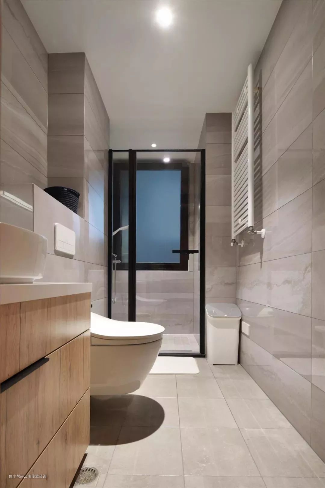 相比白色系更耐脏一些的灰色系地砖,比较具有现代时尚感,也更适合具有质感的装修风格。灰色也属于百搭色,对墙砖的颜色限制并不大。