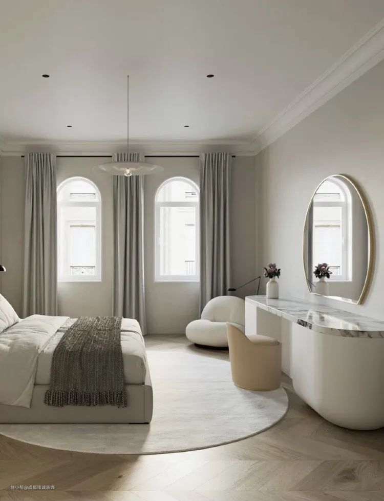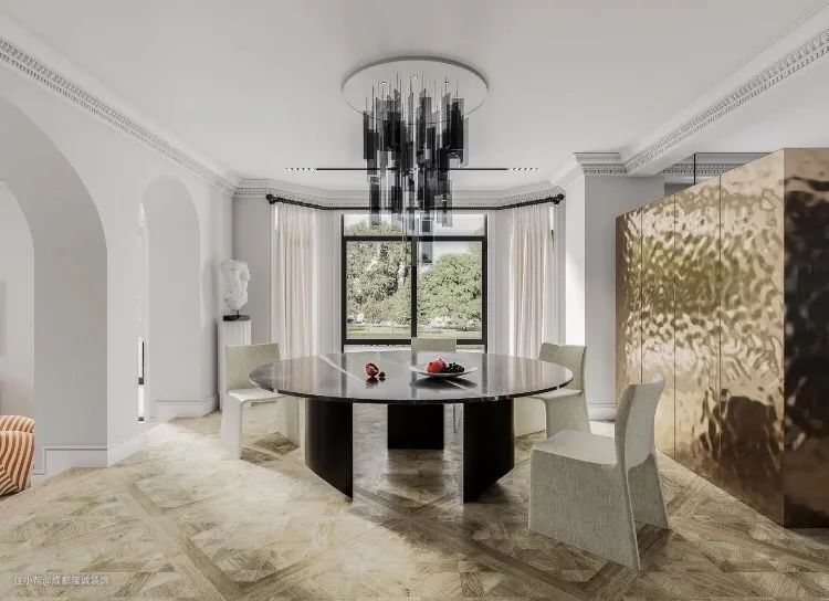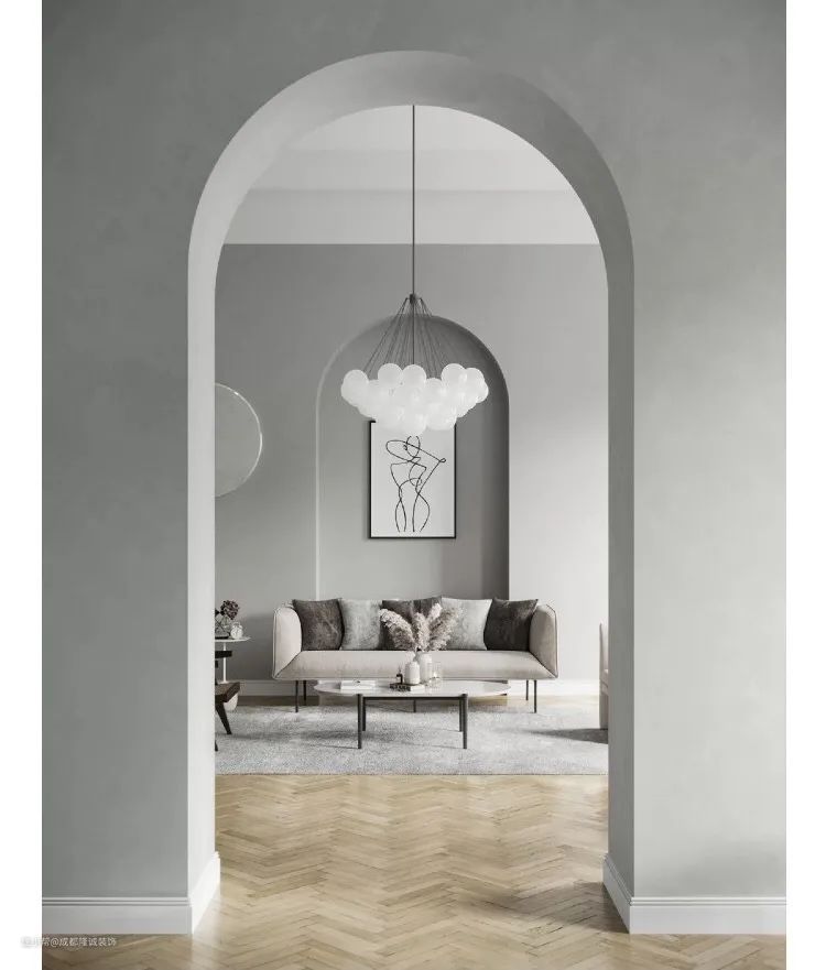 圆形拱门最为常见,它的线条弧度是比较圆润流畅的,造型感极强,风格百搭,对空间位置也没有什么限制