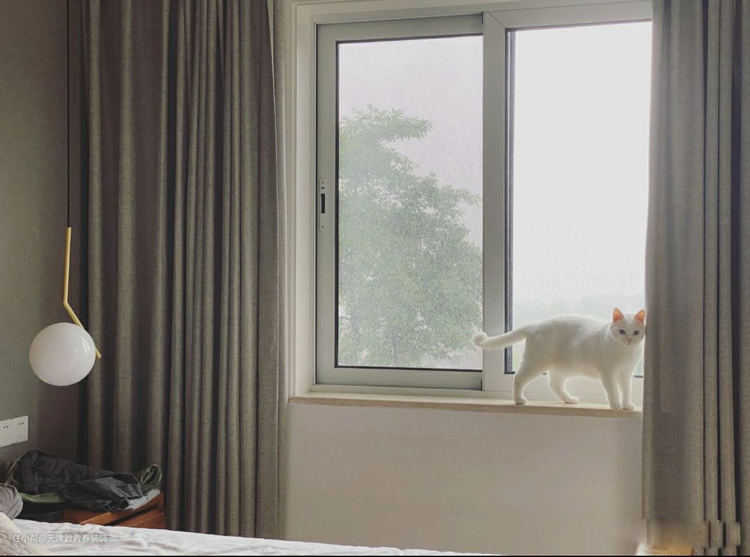其实主卧挺普通的,直接安排一张双人床,睡起来很舒服。窗户不是凸窗,而是普通的凸窗。光线还不错。猫随处可见。当铲官也是一种幸福!