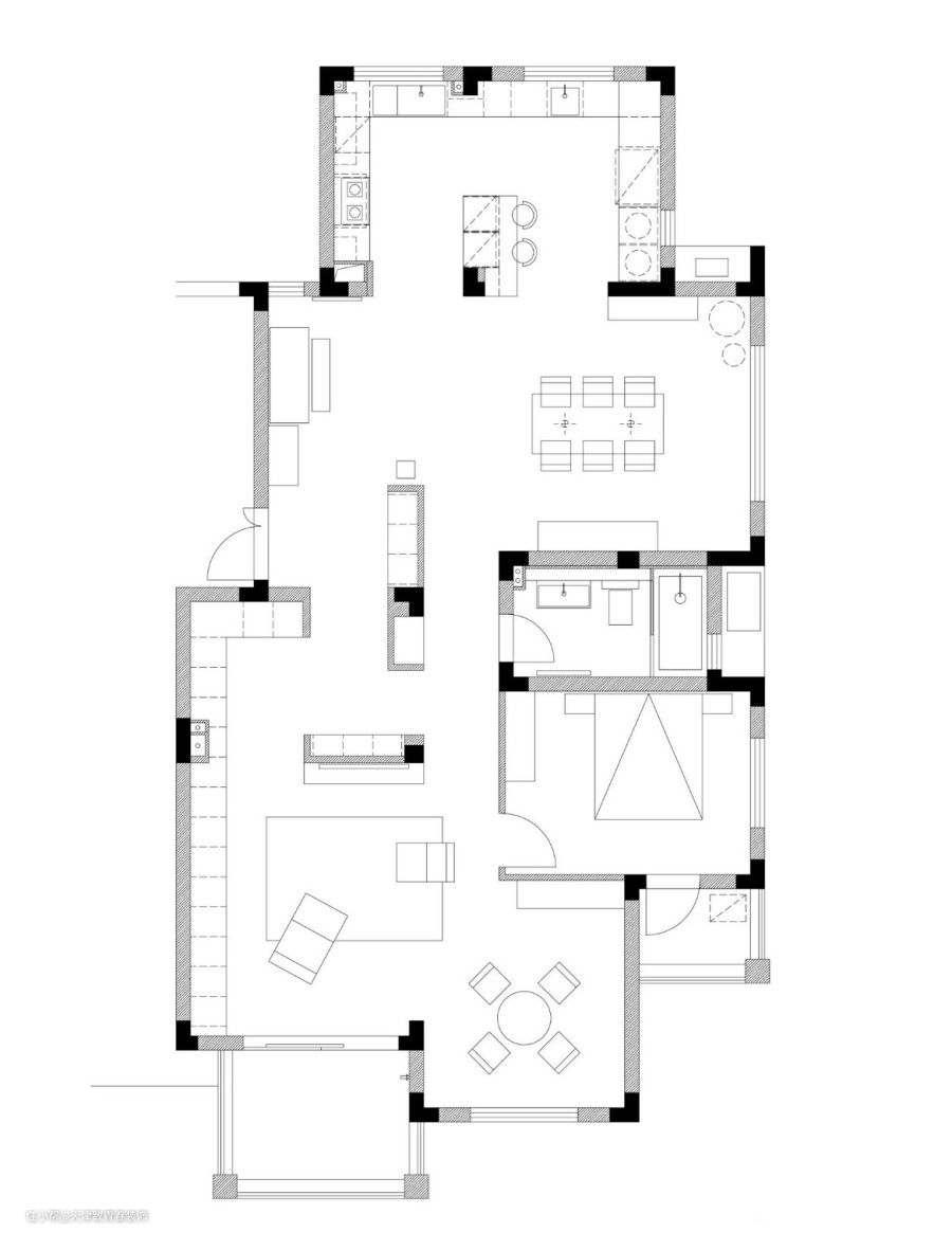 平时在家可以工作,挺好的,就是业主敢把四居室改成一居室布局。对于年轻人来说,有这么大的空间是一种享受!最后祝他们生活愉快,希望大家都能喜欢!