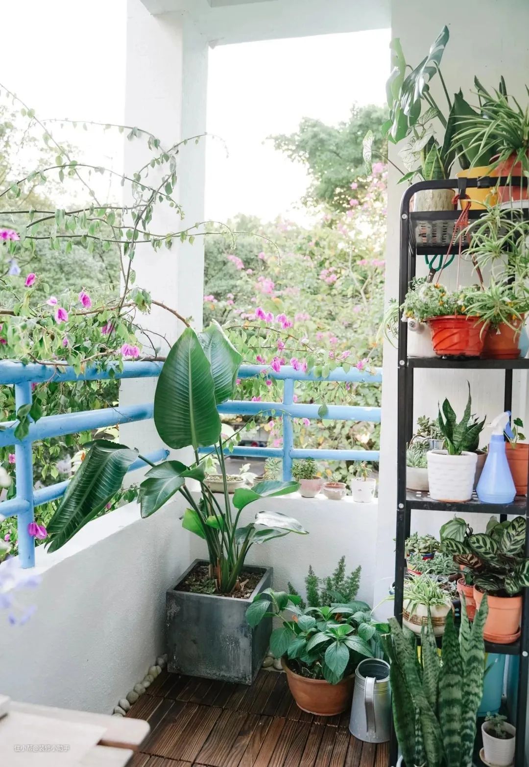到了光照充足的阳台,可想而知我们可以挑选一些喜欢光照和通风的植物,各种需要长期日晒的绿植或开花植物,不论大小,都可以放在阳台。到了开花季节郁郁葱葱,就像一个私人小花园。
