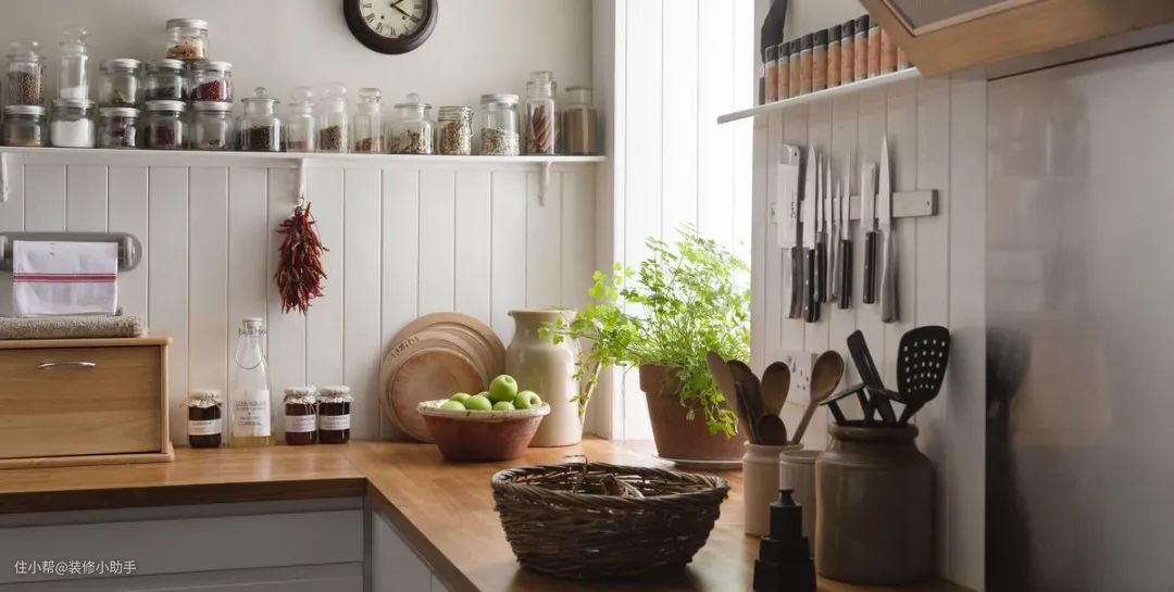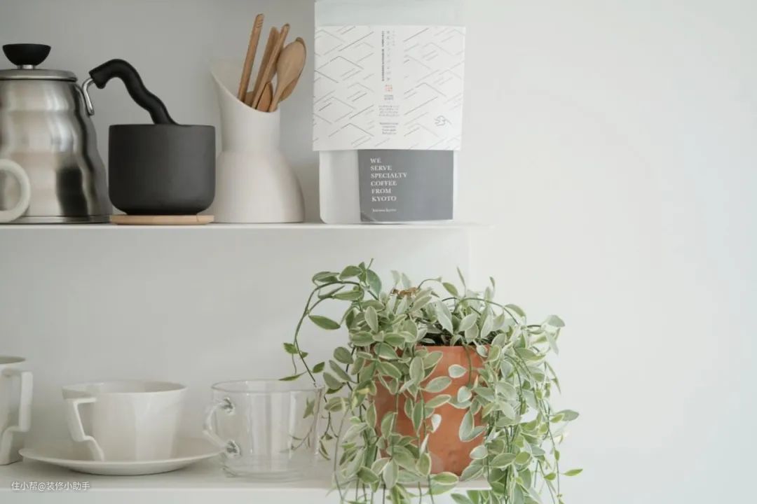 厨房空间较小,餐厨杂物又比较多,所以在厨房摆放的绿植以不阻碍厨房动线,影响下厨操作为主。各种小型的香草盆栽不仅不占地方,在下厨时还可以随手摘下用作调味。