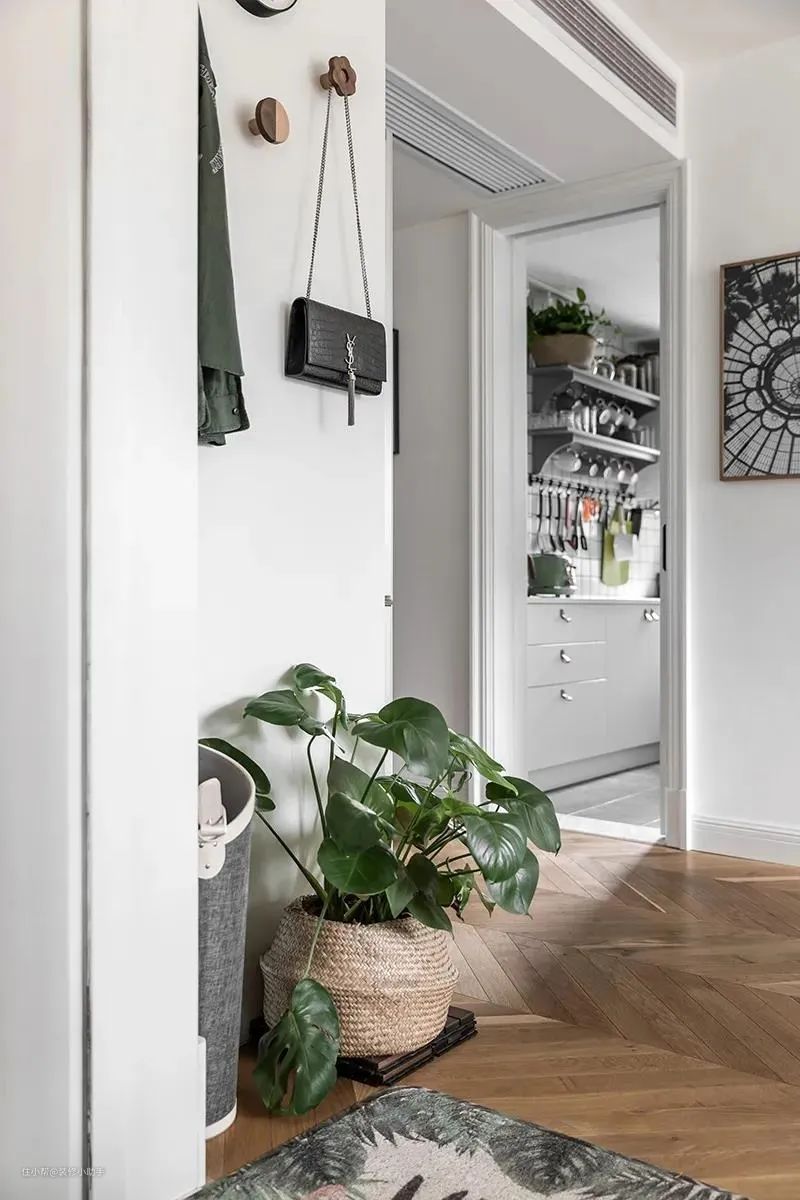 作为进屋后的第一眼,很多人把玄关视作一个家里的「风水重地」,所以摆一盆有着美好寓意的绿植,如发财树、万年青这样的植物,既有生机,又讨了好兆头。又因玄关空间较小,且不易采光,所以适合摆放植株较小,且不喜光照的植物。