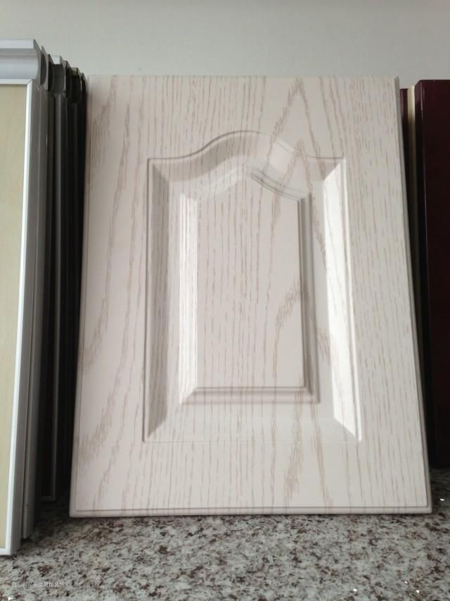膜压饰面基材为一般为密度板,表面经真空吸塑而成或采用一次无缝PVC膜压成型工艺。表面平整好,容易做各种造型,色彩丰富,纹理逼真,不易开裂变形,打理维护简单,无需进行封边处理,但不耐紫外线。不耐强碱,氧化性酸及胺,酮类,溶于氯化氢类和芳香族溶剂。