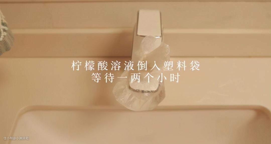 上图中白色的小颗粒,就是柠檬酸除垢剂了。把它溶解在水里,用这种水去擦拭各种水垢,就可以轻松除垢。当然我更喜欢的用法,是用抹布把带有柠檬酸的水吸进去,然后把抹布放在水垢上湿敷。十几分钟后拿走抹布,水垢自然就消失了。