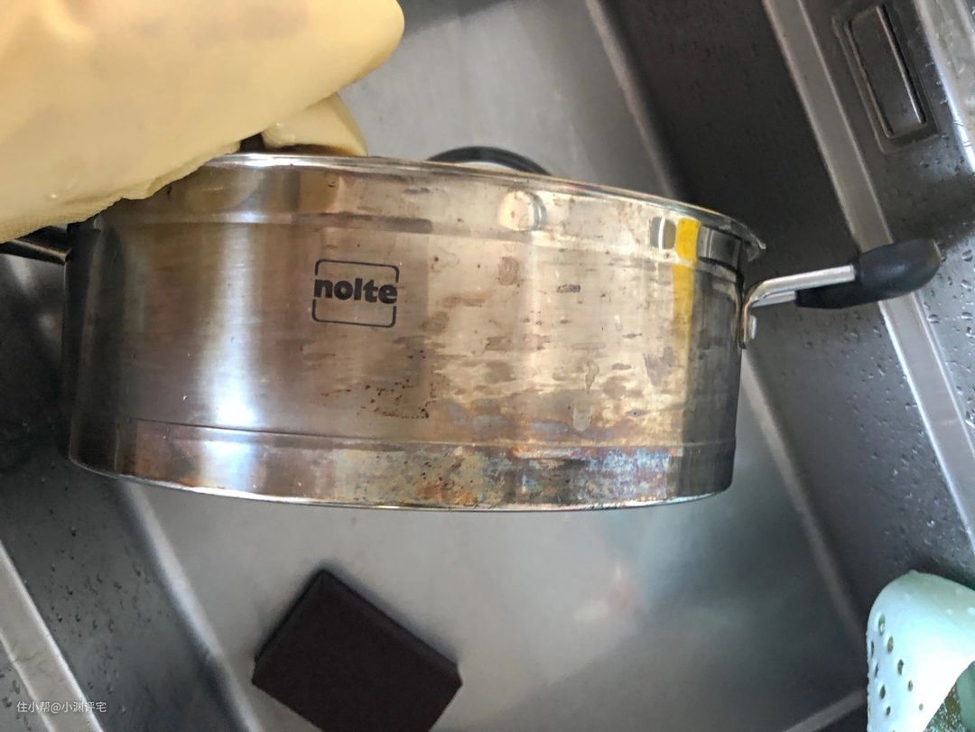 有些地方你可能想象不到,看一看自己家的锅,外面是不是有一片片的黄?这些黄色,其实有时油脂。喷上清洁剂,都可以轻松去除。