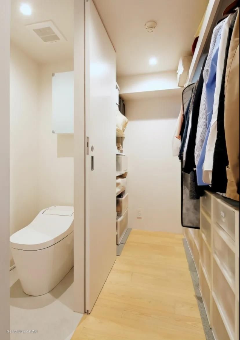 在这个设计案例中,把洗手池放进走廊一侧,正门口就是座便器间,上完卫生间,出来就可以洗手,此外方便快捷家人从外面回家了洗手,再进入LDK地域。