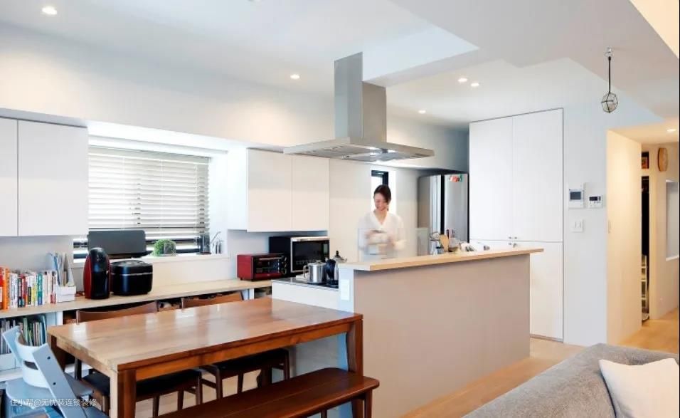 厨房餐厅跟客厅连接后,室内空间设计就看上去特别是在宽敞。