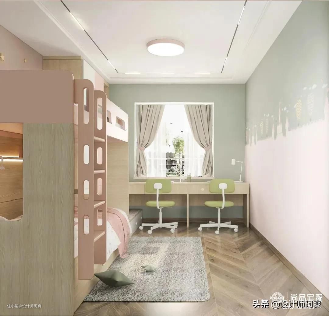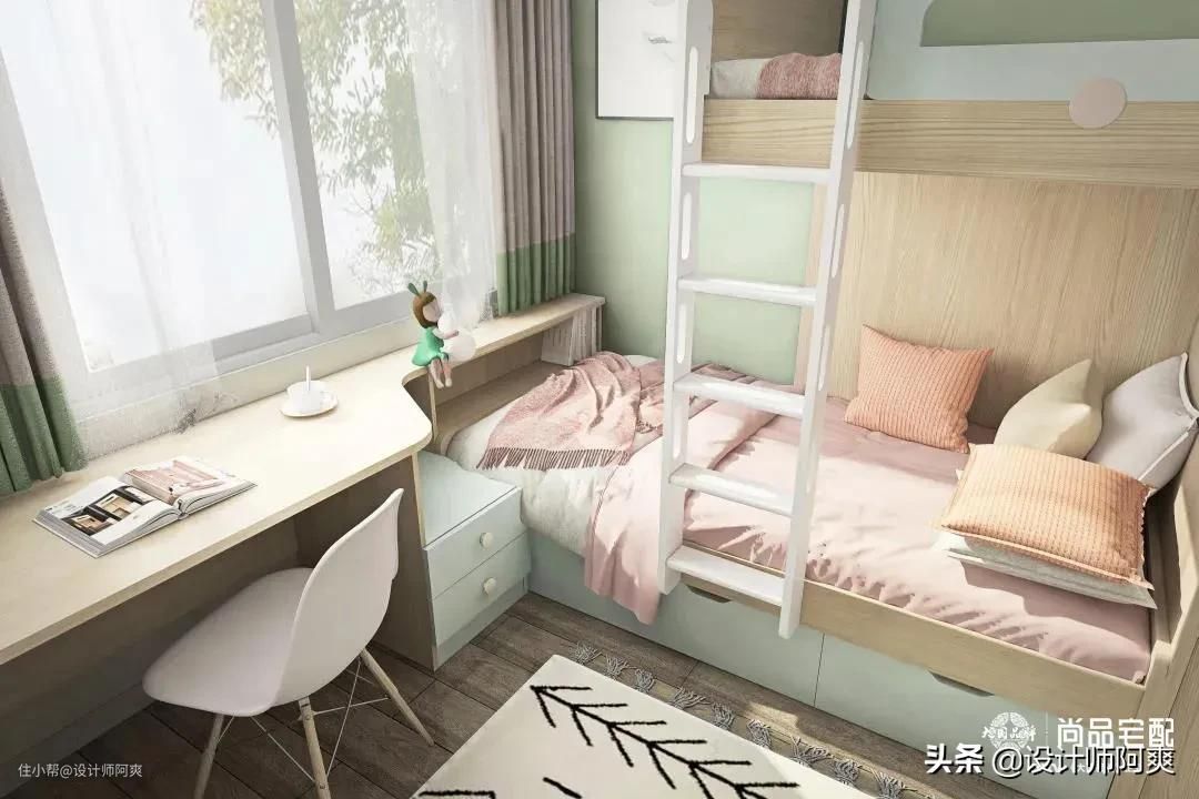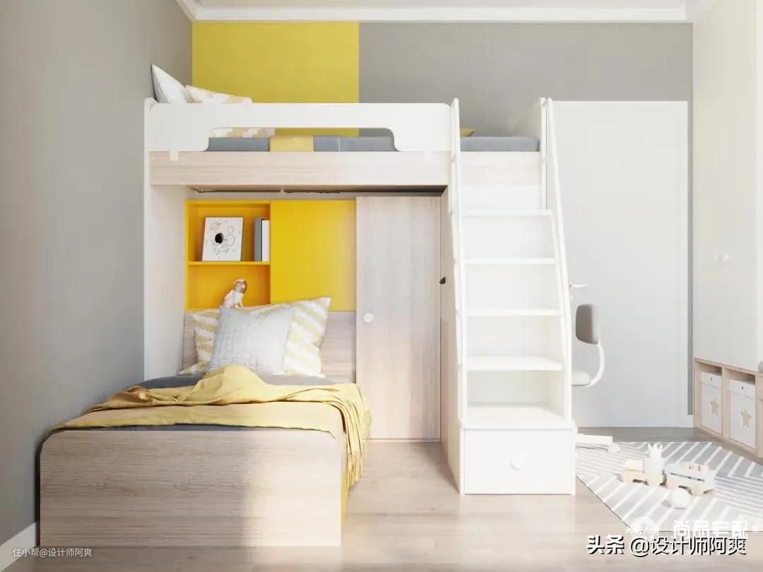 那我们就先来解决二胎的烦恼吧!设计首先要看房间大小,下面就按小、中、大房间来分享二胎儿童房设计。