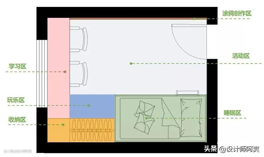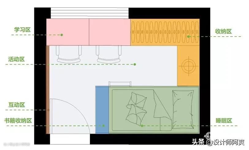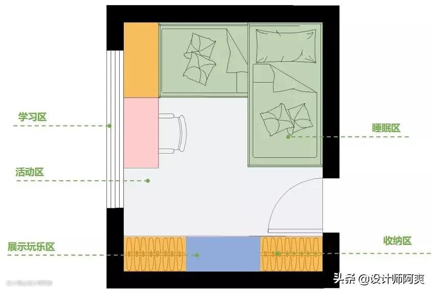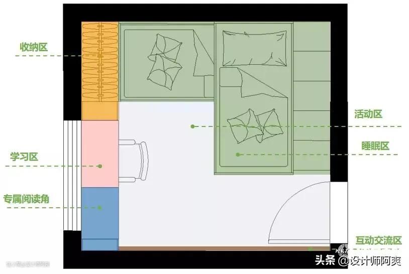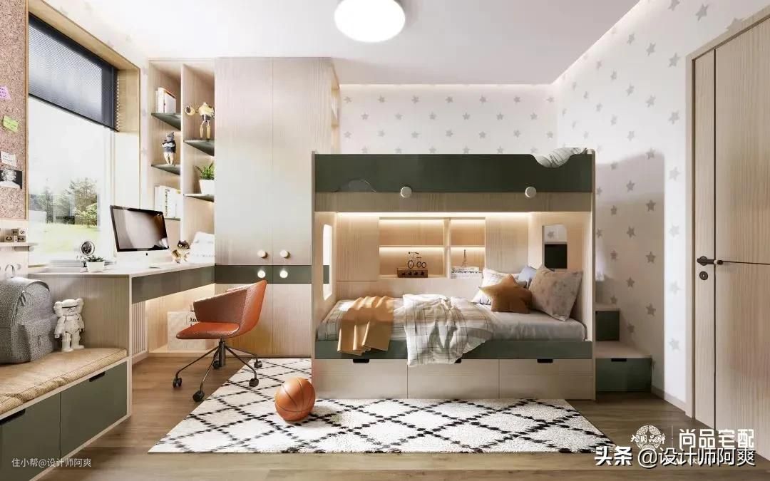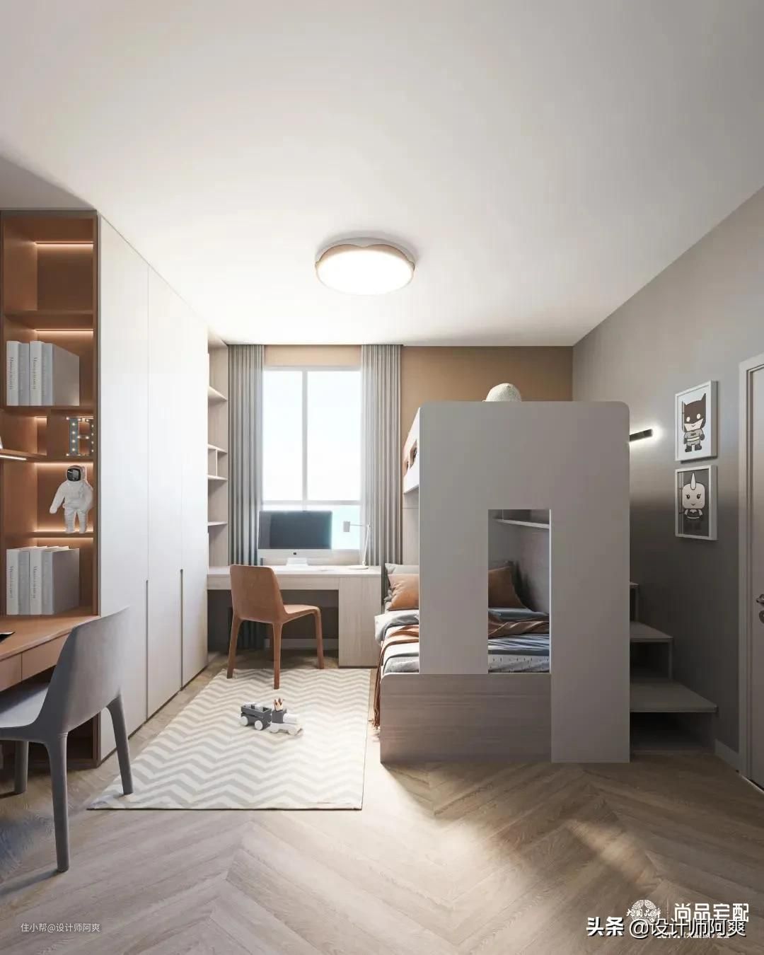 那我们就先来解决二胎的烦恼吧!设计首先要看房间大小,下面就按小、中、大房间来分享二胎儿童房设计。