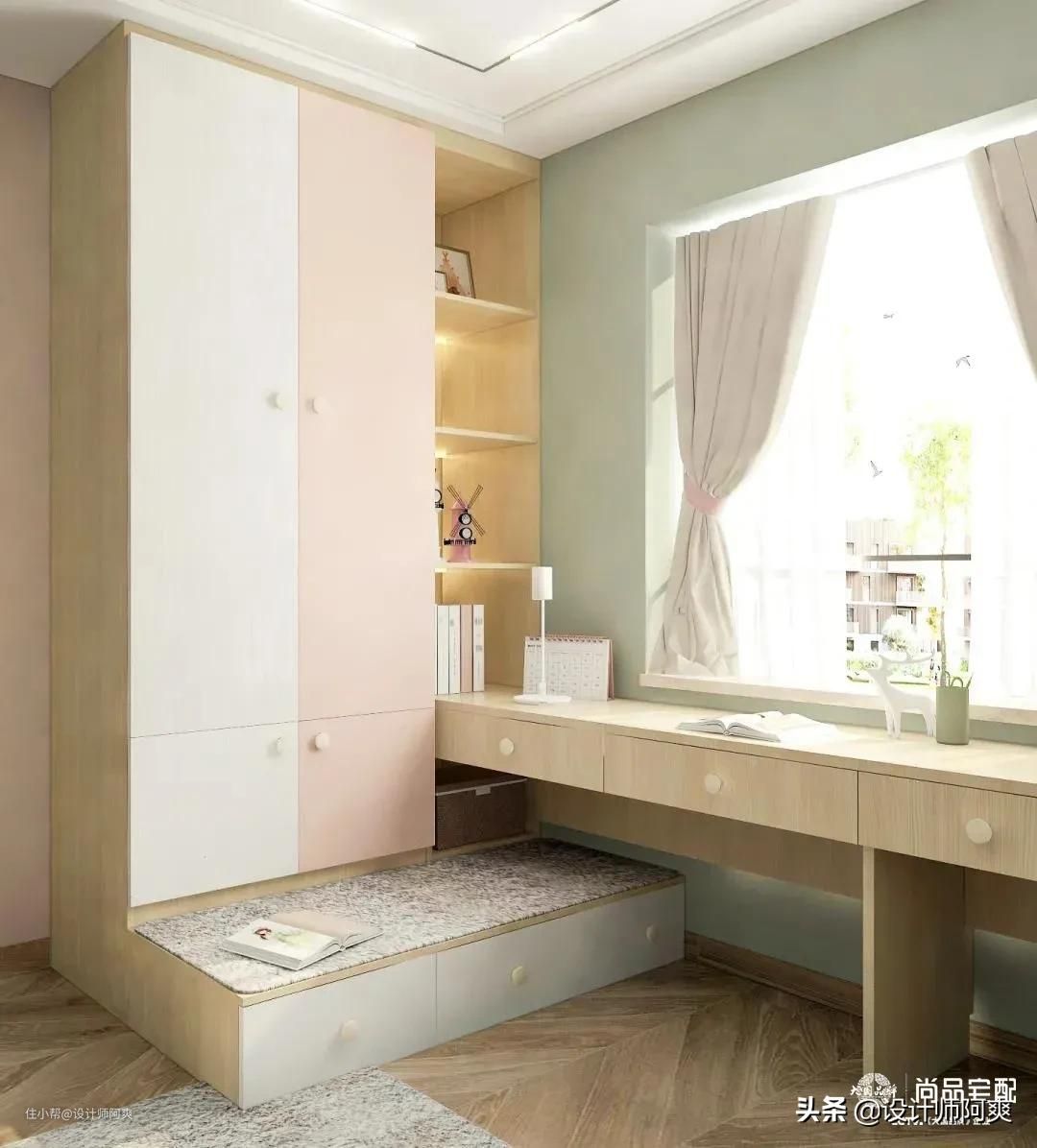 ▲ 窗边定制书桌柜+衣柜,每个宝宝都能放下200件小衣服。