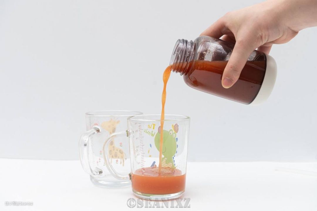 一瓶橙汁大概用了6个血橙,水果榨汁确实消耗量更大,比单独吃起来快很多,吃一个橙子可能都要撑得不行了,但果汁的话可以喝很多,增加了孩子对营养物质的获取效率,也没有了健康方面的担忧。
