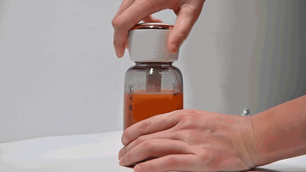 打入二氧化碳的操作也十分简单,从气泡杯上部专用位置放入气泡弹,盖上盖子,顺时针转动瓶盖,瓶盖内的装置就会刺破气泡弹,将二氧化碳注入瓶中。
