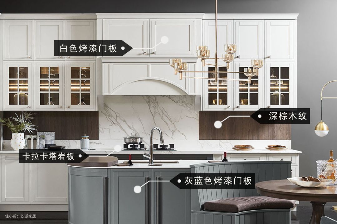 ▲白色加灰蓝色的烤漆门板点缀深棕木纹装饰,温馨淡雅又复古,加上金属芯板质感强、精致优美,瞬间融入了时尚创新的现代感。
