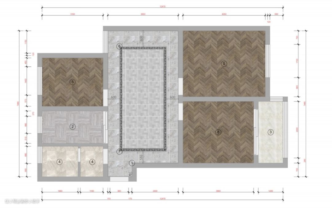 好的设计师绘制的地面材质图一般都能数出所用地砖、地板的数量,方便控制预算。当然这些都是预估,实际的用量还需把损耗考虑进去。要求注明: