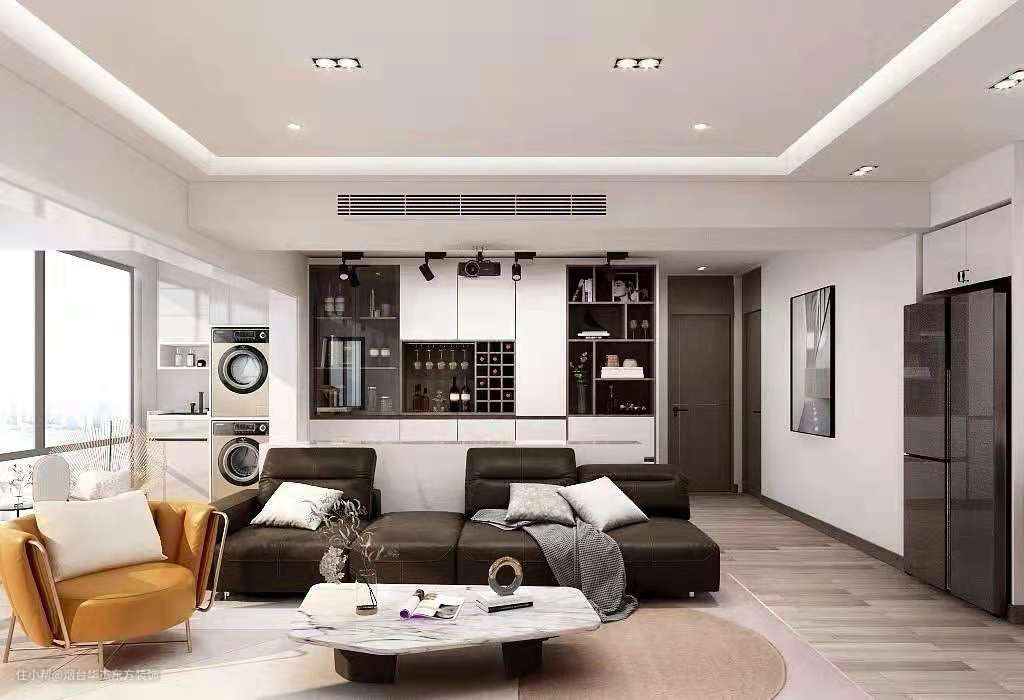 △ 全屋做了中央空调,会客区出风口隐藏在中间横向吊顶内,也能很好的隐藏此处原有梁体。