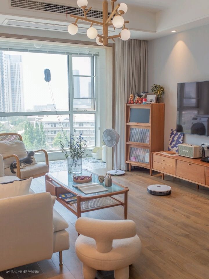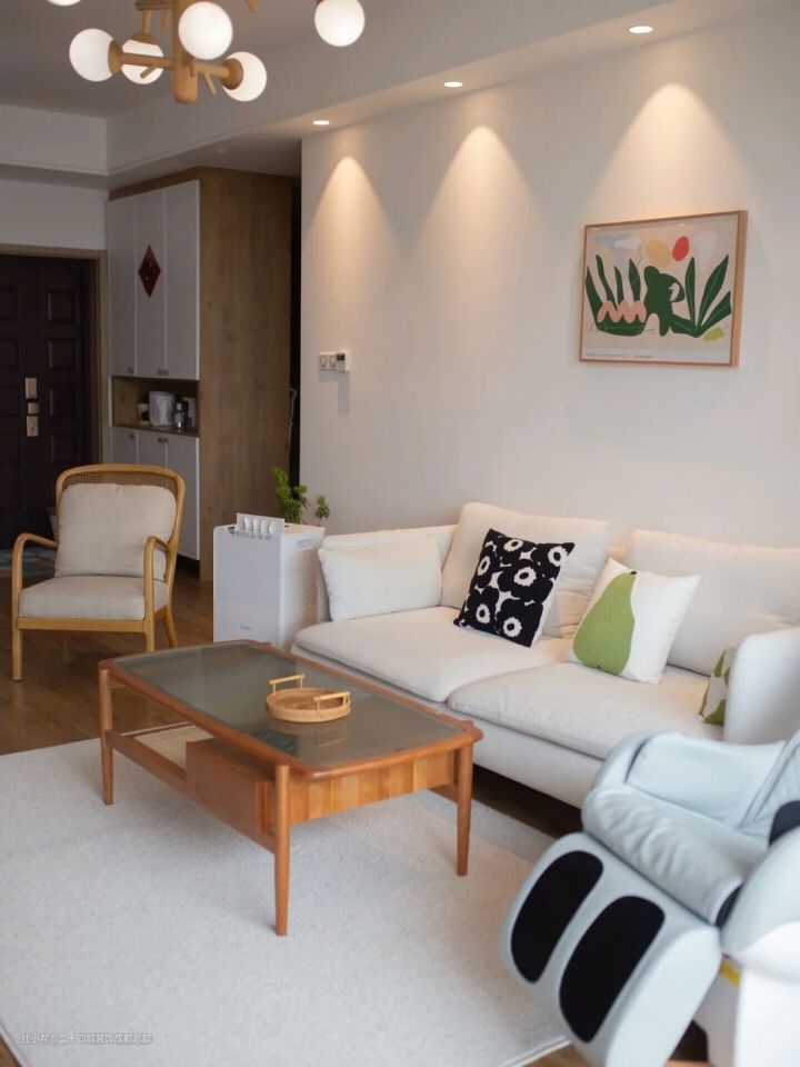 所以在装修过程中在网上找了很多参考资料,也看了很多的避坑干货,历时4个月,屋主@恺撒出走的家,才一步步,有了现在的样子,它虽然不大,却给了屋主一家三口非常多的温馨瞬间。