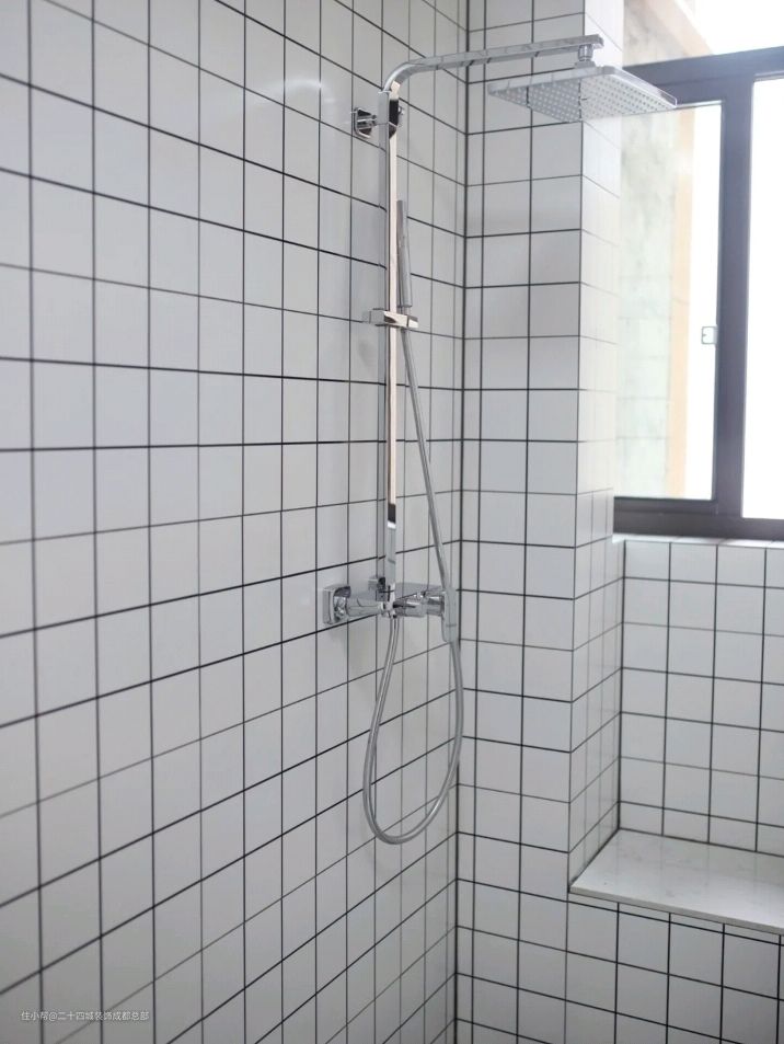 因为卫生间太小,就没做干湿分离,淋浴房里做了个石墩,考虑到给小朋友洗澡,蹲着太累,就直接砌了个石墩,对于屋主家来说特别实用。