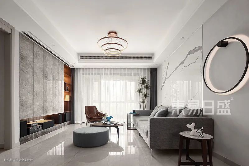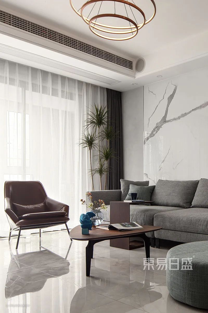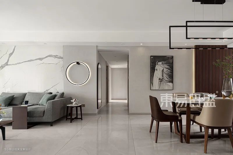 这是一套180平米的现代简约风格大平层装修案例,对屋主一家人来说三个卧室足矣,所以希望公共空间能够尽可能的宽敞通透,整体空间设计以简洁时尚为主,布置上则倾向素雅家具软质。