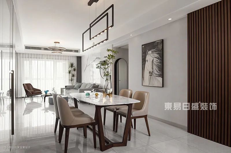 餐厅与客厅被连接成不可分割的整体,却又在设计上各有特色。