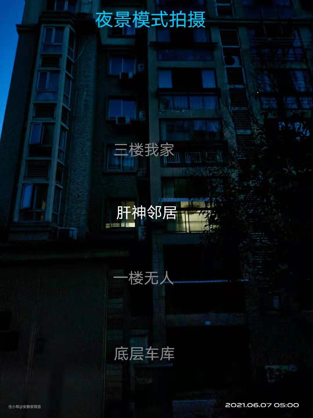 我关了灯,轻轻的走去阳台,从窗户往楼上和楼下看,楼上没有灯光,但是看到了楼下的书房和客厅有微弱的灯光,根据多年设计经验,从色温和亮度能判断那是落地灯或者台灯之类发出的光。从窗户只能看到楼上和楼下几户,没办法看到整栋,万一还有其他邻居也没睡,那我的推断就不准确了。总共才6层12户,要搞清楚谁家没睡是很容易的,我决定下楼从外部查找,轻轻的关好门,穿了一件白色T恤就下楼了。(白T恤容易识别不会吓到早起的邻居)