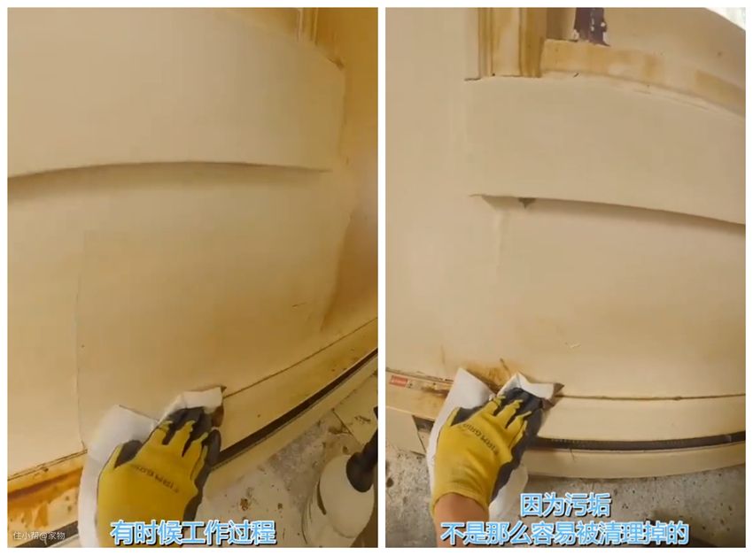 哦对,这位清洁师还专门对马桶周围进行了重点清洁,将马桶整体清洁出了“原本的样子”,厚厚的脏污都被清理干净的过程,看着可太解压了。
