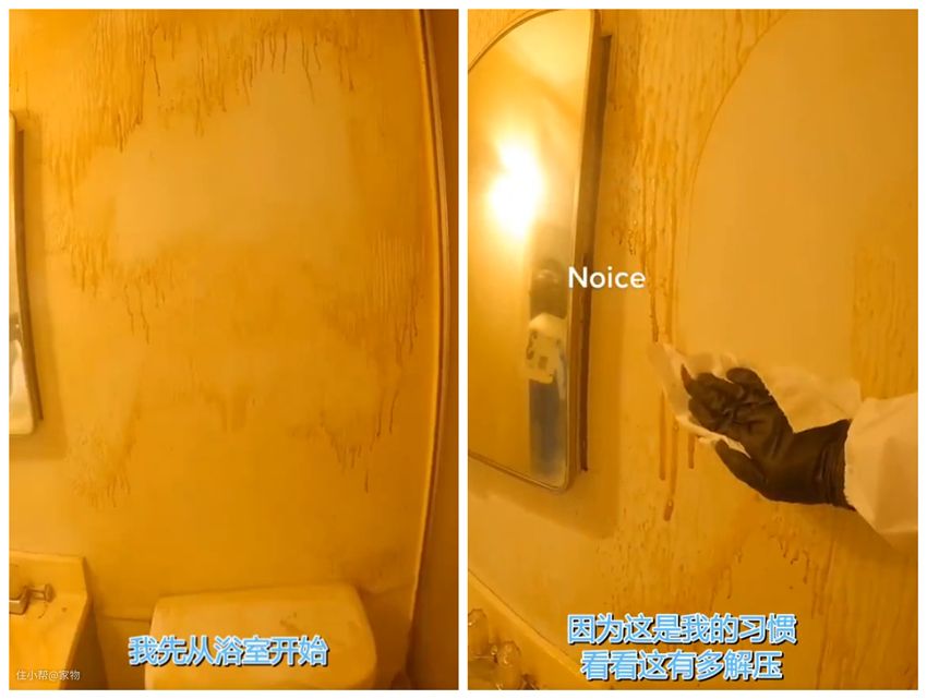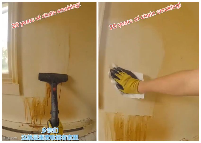 重度烟民住20年的房子,清理墙壁烟渍太痛快,网友:解压