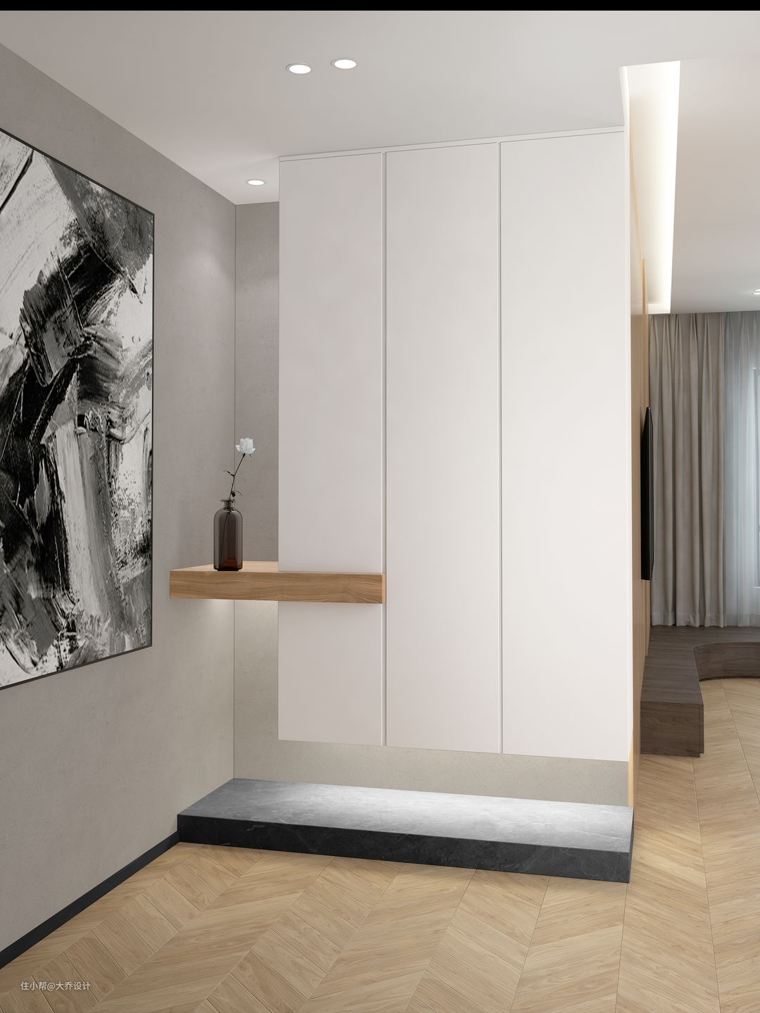 悬浮入门玄关,透气性轻盈感现代感十足,储物性与美观性很好的结合。